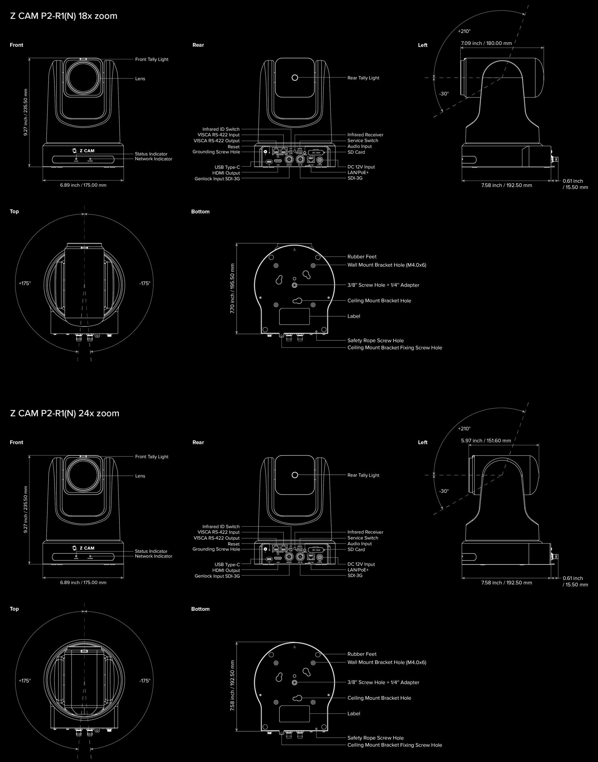 P2-R1(N) 24x zoom - Horizontal: 60º to 3.2º