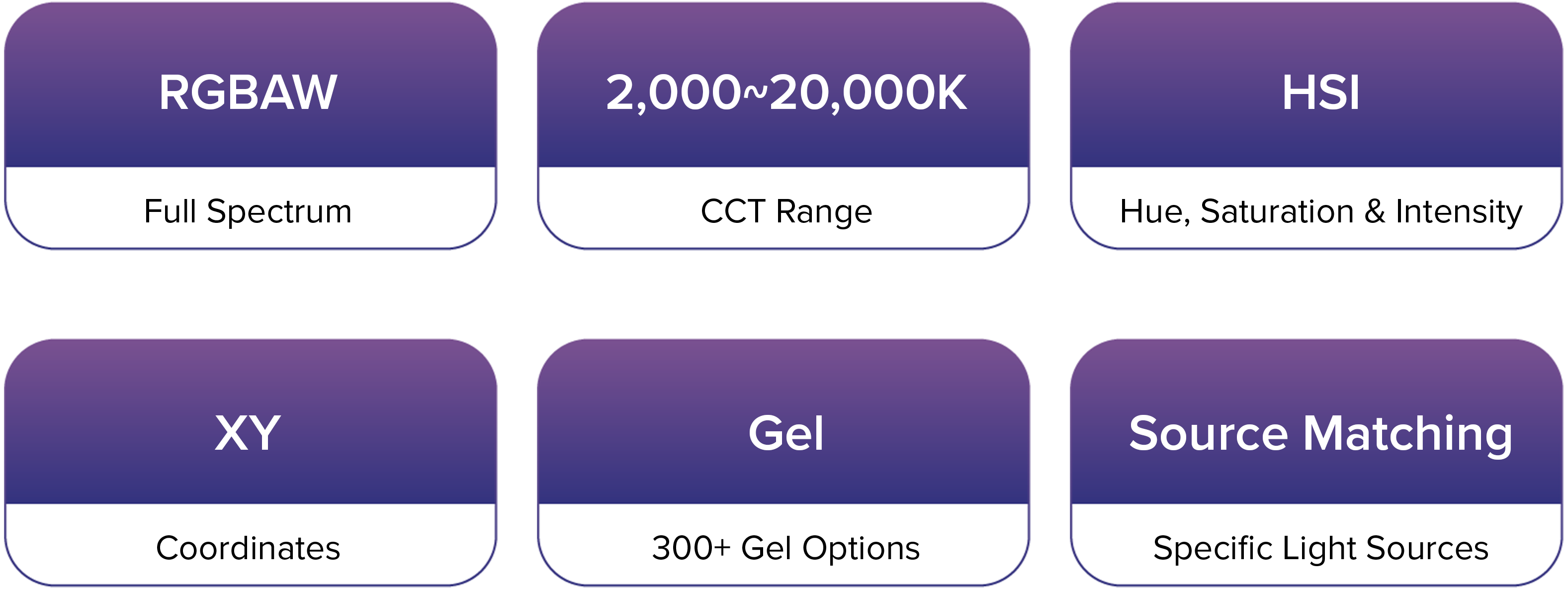 | Colored Light Full RGBAW Color Gamut with Hue and Saturation Control |