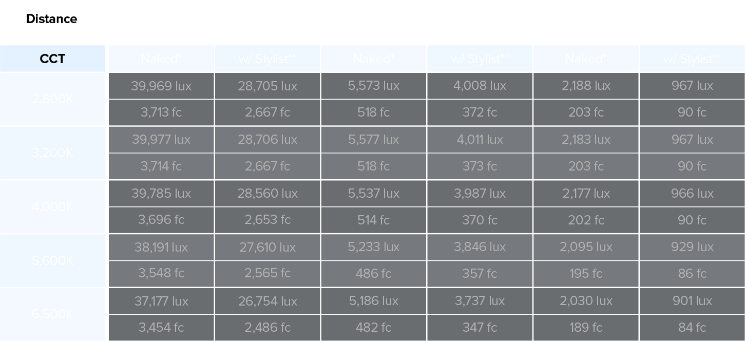 * @ 3,200K CCT (without ZOLAR Stylist)
